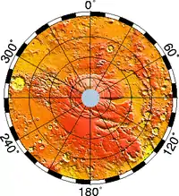 - Planum Boreum, рівнина на північному полюсі.