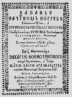 - Копистенський З. Казанье на честном погребі Еліссеа в ієросхимомонасех Евфиміа Плетенецкого. — К. : друкарня Києво-Печерської лаври, 1625.