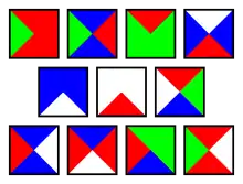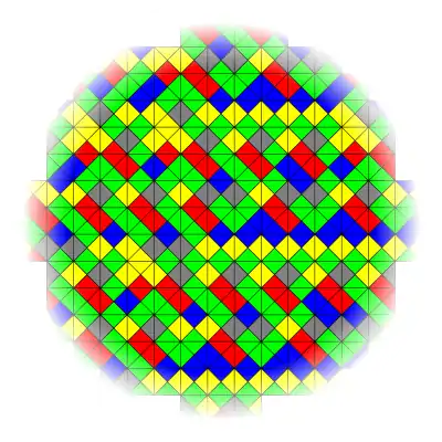 Комбінація результату Бергера зі спостереженням Вана показує, що повинен існувати скінченний набір плиток Вана, які замощують площину, але лише неперіодично. Цю властивість має мозаїка Пенроуза і розташування атомів у квазікристалі. Хоча оригінальний набір Бергера містив 20 426 плиток, він припустив, що менші набори можуть також існувати, зокрема підмножини його оригінального набору, та в опублікованих тезах його дисертації він скоротив число плиток до 104. Пізніше знайдено ще менші набори[5][6][7]. Наприклад, набір з 11 плиток і 4 кольорів, наведений вище, є неперіодичним набором, і його відкрили Еммануель Жандель і Майкл Рао в 2015 році, використовуючи повний перебір для доведення того, що 10 плиток або 3 кольорів недостатньо для аперіодичності[8].