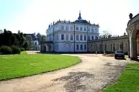 Замок будували у 1720—1730-х роках. Гадають, що схема за французьким типом: величний центральний корпус пов'язаний відкритими галереями з бічними павільйонами, що надає невеликому палацу просторового масштабу і величі. Схема швидко стала інтернаціональним надбанням і до неї звертались архітектори з різних європейських країн, що обслуговували аристократів. Серед них — Ніколо Мікетті з Італії (проєкт царського палацу, Стрєльна); Франсуа де Вааль з Фландрії (проєкт палацу в Дальніх Дубках); Бартоломео Растреллі і пізніше, у дещо зміненому варіанті, навіть майстри класицизму.