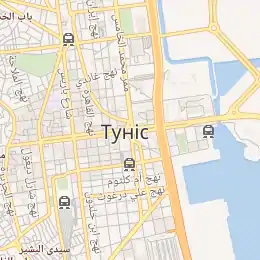 ![]() Вид з авеню Бургіби на площу Африки і туніський «Біг-Бен» | |