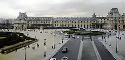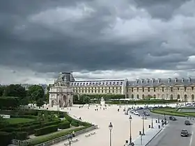 До 1871 року частину сучасної площі займав палац Тюїльрі, будівництво якого було розпочато 1564 року за ініціативою Катерини Медичі. На час будівництва заміського Версаля Людовик XIV обрав Тюїльрі місцем перебування свого двору. З 1716 року до 1722 року в палаці мешкав малолітній Людовик XV. У 1806—1808 роках перед палацом Тюїльрі за наказом Наполеона для увічнення його перемог була споруджена тріумфальна арка[2]. 23 травня 1871 року палац був спалений паризькими комунарами. Відновлювати його не стали, і це місце стало частиною громадського простору, розширивши площу Каррузель.