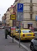 На площі — зупинка празьких таксівок.