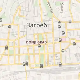 - зі східного боку — Міністерство закордонних справ та європейської інтеграції Республіки Хорватії та Загребський окружний суд.