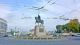 До 300-річчя Санкт-Петербурга в 2002 році на площі був відкритий кінний пам'ятник Олександру Невському[2][3] (скульптор Валентин Козенюк), а в 2005 році на його п'єдесталі були встановлені барельєфи, що зображують Льодове побоїще і перенесення мощей Олександра Невського в Петербург. В останній барельєф вставлена частинка мощей святого Олександра Невського.