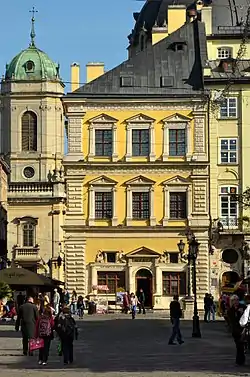 Сучасна пл. Ринок № 36. Споруджений у 1778—1781 роках за проєктом французького архітектора П'єра-Дені Ґібо. У кінці 1700-х років тут проживав польський військовий діяч Юзеф Понятовський. На початку XX століття у будинку була крамниця «Народної торгівлі» українського Крайового споживчого союзу. У кам'яниці збереглися написи латинською мовою: «Ісус дня 1-го липня» й «Марія року Божого 1730».