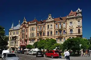 № 14, 15 — в кам'яниці під № 14 містився готель «Палас»[15], котрий після 1944 року мав назву — готель «Колгоспний». Також у 1950-х роках цю ж адресу мала шашлична, а у 1960—1980 роках — магазин «Риба». В будинку під № 15 до 1939 року містився магазин офісних меблів Возачинського. Будинки внесені до Реєстру пам'яток архітектури місцевого значення під охоронними № 1223-м та 567-м відповідно[3]. У 2007—2008 роках обидва будинки були розібрані, а 2014 року на цьому місці зведено будівлю, в якій міститься ТЦ «Роксолана».