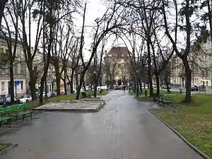 | Вишиваного | Галицький район | 49°49′38″ пн. ш. 24°02′14″ сх. д. | Більшу частину площі займає сквер. Названа на честь Василя Вишиваного. | ![]() |