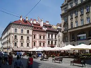 | Старий Ринок | Шевченківський район | 49°50′46″ пн. ш. 24°01′47″ сх. д. | Один з найдавніших майданів міста. Посередині розташований сквер, на місці якого до Другої світової війни стояла єврейська синагога — Темпль. | ![]() |