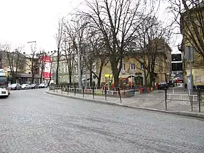| Соборна | Галицький район | 49°50′21″ пн. ш. 24°02′02″ сх. д. | Важливий транспортний вузол, тут розташована кінцева зупинка трамвая № 3. Є два сквери, один з яких, за назвою Бернарденгарден, простягається до вулиці Валової. | ![]() |