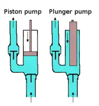 Плу́нжерний насос — об'ємний насос, витісняльною деталлю якого є плунжер, що відрізняється від поршня меншим діаметром, завдяки чому можна досягти вищого напору при меншій подачі. З погляду гідравліки, плунжерний насос не відрізняється від поршневого. При однаковому протіканні робочого процесу характеризуються простішою експлуатацією, завдяки відсутності змінних деталей (поршневих кілець, манжет тощо.)