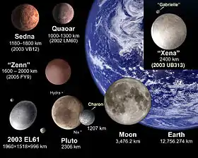 Плутон та інші транснептунні об'єкти порівняно з Землею.
