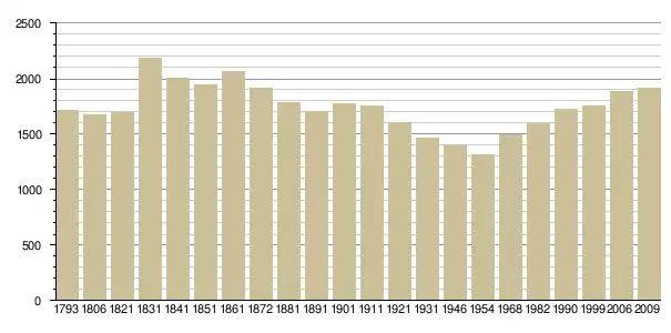 Динаміка населення (Base de données Cassini[3] і Insee[4] ):