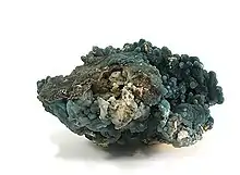 Утворює клеєподібні натеки, ниркоподібні агрегати, сталактити.