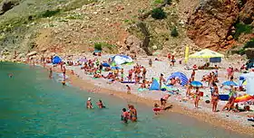 - В бухті Ласпі — галечний довгий пляж на Південому березі Криму В бухті багато баз відпочинку, але є і ділянки диких пляжів.