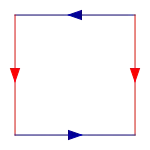 Пляшка Кляйна визначається просто як прямокутник, у якому об'єднано (склеєно) парами відповідні точки протилежних сторін, причому одна пара була обернена на 180°. На ілюстрації краї позначені кольорами, а напрям орієнтації стрілками.