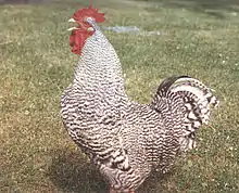 - сріблястий обв'язаний (Silver Pencilled Plymouth Rock),