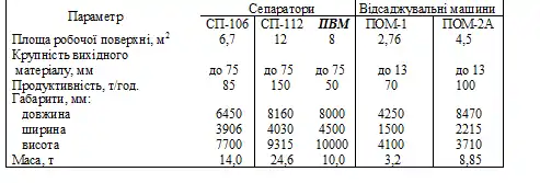 - Технічні характеристики пневматичних сепараторів і відсаджувальних машин