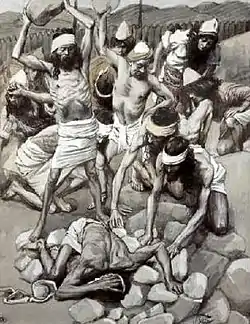 Побиттю камінням піддався першомученик святий Стефан (див. Діяння святих апостолів).