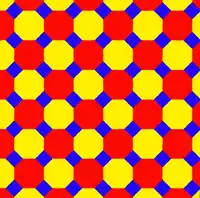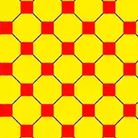 ![]() ![]() Зрізана квадратна мозаїка будується за допомогою двох різних позицій у сімействі (4 4 2). |