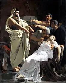 Після того як присутні дали свою згоду, вона встромила кинджал у своє серце. Брут кинувся до неї, дістав кинджал і заговорив рішуче і впевнено: