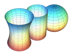 Гаусова кривина може бути обчислена через метрику, і тому вона є об'єктом внутрішньої геометрії поверхонь (відзначимо, що головні кривини до внутрішньої геометрії не належать). За знаком кривини можна класифікувати точки поверхні (див. малюнок). Кривина площини дорівнює нулю. Кривина сфери радіуса R всюди дорівнює . Існує й поверхня постійної від'ємної кривини — псевдосфера.