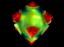 За допомогою анігіляції позитронів також можна визначити поверхню Фермі, оскільки процес анігіляції зберігає імпульс початкової частинки. Відповідна експериментальна техніка називається кутовою кореляцією випромінювання анігіляції (ACAR, Angular Correlation of Annihilation Radiation), оскільки вона вимірює кутове відхилення від 180 градусів обох квантів анігіляції. Таким чином можна зондувати щільність електронного імпульсу твердого тіла та визначити поверхню Фермі. Крім того, за допомогою спін-поляризованих позитронів можна отримати розподіл імпульсу для двох спінових станів у намагнічених матеріалах. ACAR має багато переваг і недоліків у порівнянні з іншими експериментальними методами: він не залежить від умов ультра високого вакууму, кріогенних температур, високих магнітних полів або повністю впорядкованих сплавів. Однак ACAR потребує зразків з низькою концентрацією вакансій, оскільки вони діють як ефективні пастки для позитронів. Таким чином в 1978 році було отримано перше визначення розмитої поверхні Фермі в 30 % сплаві. Поверхня Фермі міді, що була відбудована за допомогою ACAR, приведена на Рис.4.