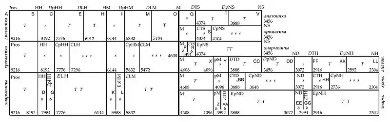 Вперше Повну незмінну систему в усіх трьох родах мелосу в (найменших цілих) числах сформулював і описав Боецій, у трактаті «Основи музики»(Mus. IV.11):