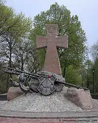 | Тарас Шевченко на мотив повстання, бою в урочищі Жуків Байрак, написав вірш «За байраком байрак»[11] з циклу «В казематі». Згодом слова вірша поклали на музику різні колективи, зокрема «Кому Вниз» |