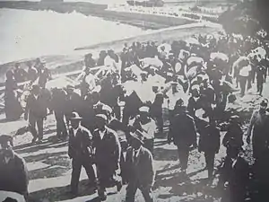 У воді плавало до тридцяти осіб. Повсталі матроси вели по них вогонь з гвинтівок (один з нападників згодом стверджував, що випустив мало не сорок куль) — вони вважали, що у воду могли стрибнути лише ті, кому є чого боятися — офіцери або «кожі» — і тому цілком заслуговують смерті. Насправді більша частина, що стрибнула у воду, була молодими матросами, які розгубилися і злякано пострибали за борт[23].