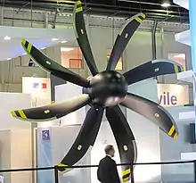 - Застосування шаблеподібних лопатей. Багатолопатевий повітряний гвинт з тонкими шаблеподібними лопатями дозволяє змістити появу хвильової кризи, і тим самим збільшити максимальну швидкість польоту. Таке технічне рішення реалізоване на літаку Ан-70.