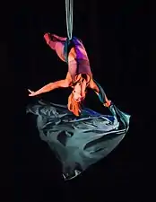 - Політ з висоти — техніка падіння, за якої попередньо обмотане полотно розкручується та допомагає гімнасту безпечно спуститися на підлогу.