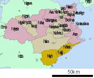 - (яп.) Повіт Кайфу // Великий словник японських топонімів Кадокава. Префектура Токушіма (36). — Токіо: Кадокава Шьотен, 1986.