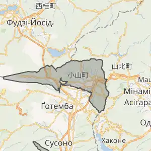 На півдні межує з містом Ґотемба, на півночі з префектурами Яманасі та Канаґава.