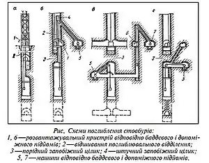 Розрізняють чотири технологічні схеми поглиблення стовбурів (рис.):