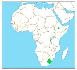 Вид поширений в центральних високогірних районах Ефіопії та на сході ПАР. Залітні особини трапляються на півдні Зімбабве та Замбії. Мешкає серед гірських боліт.