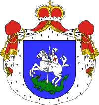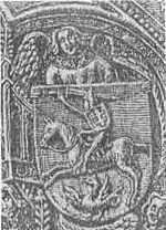 - вершник з мечем та переможеним ворогом у вигляді змія під ногами коня;