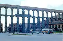 Старовинні римські акведуки також мали подачу самопливом, для подачі води у віддалені селища. У цьому випадку подача води відбувалася за допомогою напору, з місця забору води до місця витоку у селищі, на яке діяла сила тяжіння; у той час як потік води протистоїть тертю у трубах, яке визначається насамперед від довжини і діаметра труби, а також його віку і матеріалу, з якого вона виготовлена[1].
