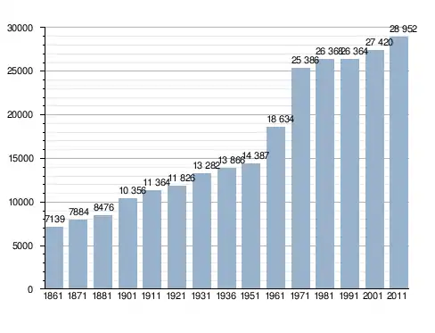 Станом на 31 грудня 2014 року в муніципалітеті офіційно проживало 3247 іноземців з 80 країн, серед них 751 громадянин країн Євросоюзу та 93 громадяни України.[4]