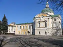 ![]() Подорожній палац, фасад бічного павільйону з куполом, звернутий до парадного двору | ||||