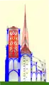 Будівництво Собору Паризької Богоматері (Паризька Богородиця, тобто Діва Марія) почалося в XII-му столітті, використовуючи кам'яну кладку для структурної підтримки та дерево для основних дахів і його знакового шпилю. Шпиль був зроблений у дев'ятнадцятому столітті з дуба та був укритий свинцем; оригінальний шпиль був видалений у 1786 році[6].