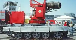 Пожежна машина виконана на базі середнього танка Т-54, що має високу прохідність і маневреність.