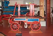 була по суті, прямокутною коробкою на колесах, заповнюваною водою за допомогою ковшової бригади, яка поповнювала джбан, у той час як ручні насоси, забезпечували достатній тиск води для гасіння пожеж на відстані.