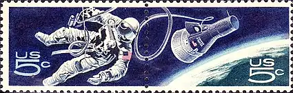 Американська поштова служба для відзначення досягнень в космонавтиці 1967 року випустила космічну марку. Поруч з космонавтом Едом Вайтом космічний корабель Джеміні-IV.