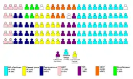 Місць | +/- місць у порівнянні з попередніми виборами |