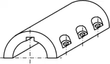 Такі муфти середнього і малого розмірів передають крутний момент тільки тертям між валом і муфтою. У муфтах великого розміру між валами і муфтою вводиться шпонка, що передає основну частину крутного моменту. Розрахунок подовжньо-скрутних муфт зводиться до визначення розмірів і числа болтів, що з'єднують напівмуфти, а також перевірки шпонок на зріз і зминання.