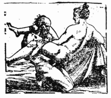 18 | «Пандора» | Мужчина в короні, напевно Епіметей | Пандора | Лежачи на боку лицем до лиця з переплетеними ногами | Хлопчик із свічкою, можливо, символізує посилання на класичний твір Плінія 'Puer sufflans ignes. Сатир, що намагається приєднатися до любовної гри, відштовхується ногою. Можливий прояв вуаєризму. |