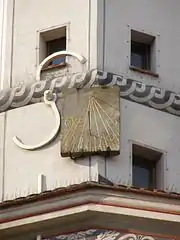 Крім механічного годинника, який має великі циферблати, на лівій вежі фасаду вертикально прикріплений невеликий сонячний годинник з пісковика, який не всі помічають. Він має дуже вузький діапазон годин — з 9:00 до 15:00, а оскільки він малий і розміщений дуже високо над тротуаром, то неможливо без бінокля побачити котру годину він показує.[7]