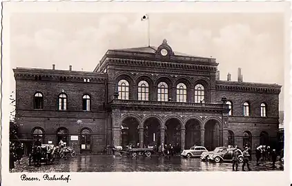Головний вокзал Познані (листівка 1940-х рр., видавець: Kunsthandlung des Ostens L.Denecke, Posen)