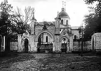 Загальний вигляд Покровської церкви з брамою